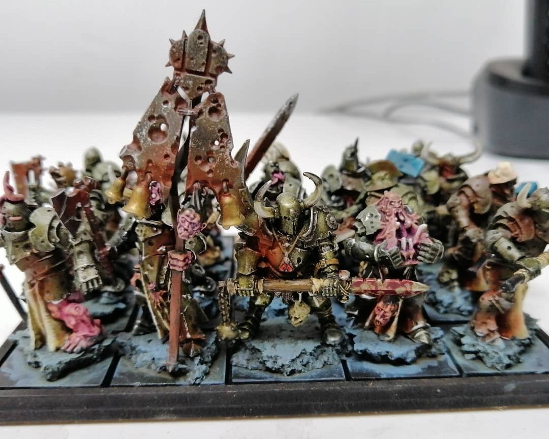 The Warriors of Pestilence with Weapon and Shield are a relentless multi-part plastic regiment devoted to decay, disease, and unbreakable defense. Clad in rusted armor and carrying battered shields, they advance steadily while absorbing punishment that would shatter lesser troops.